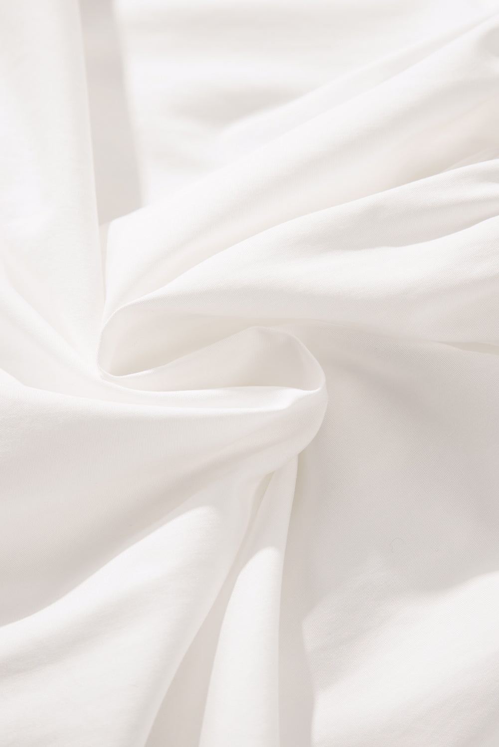 Exquisite floral lace yoke creates this white dress a touch of elegance.