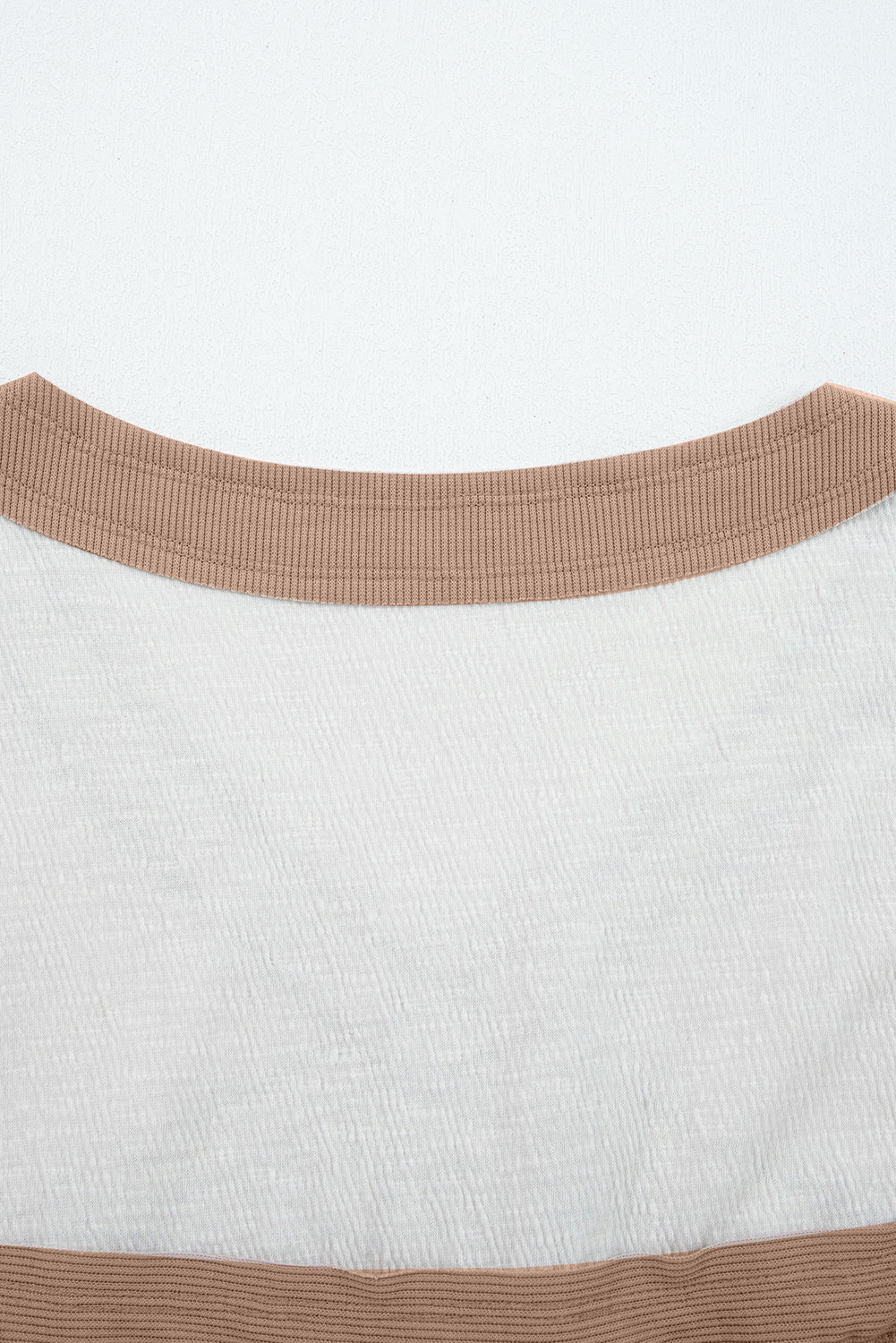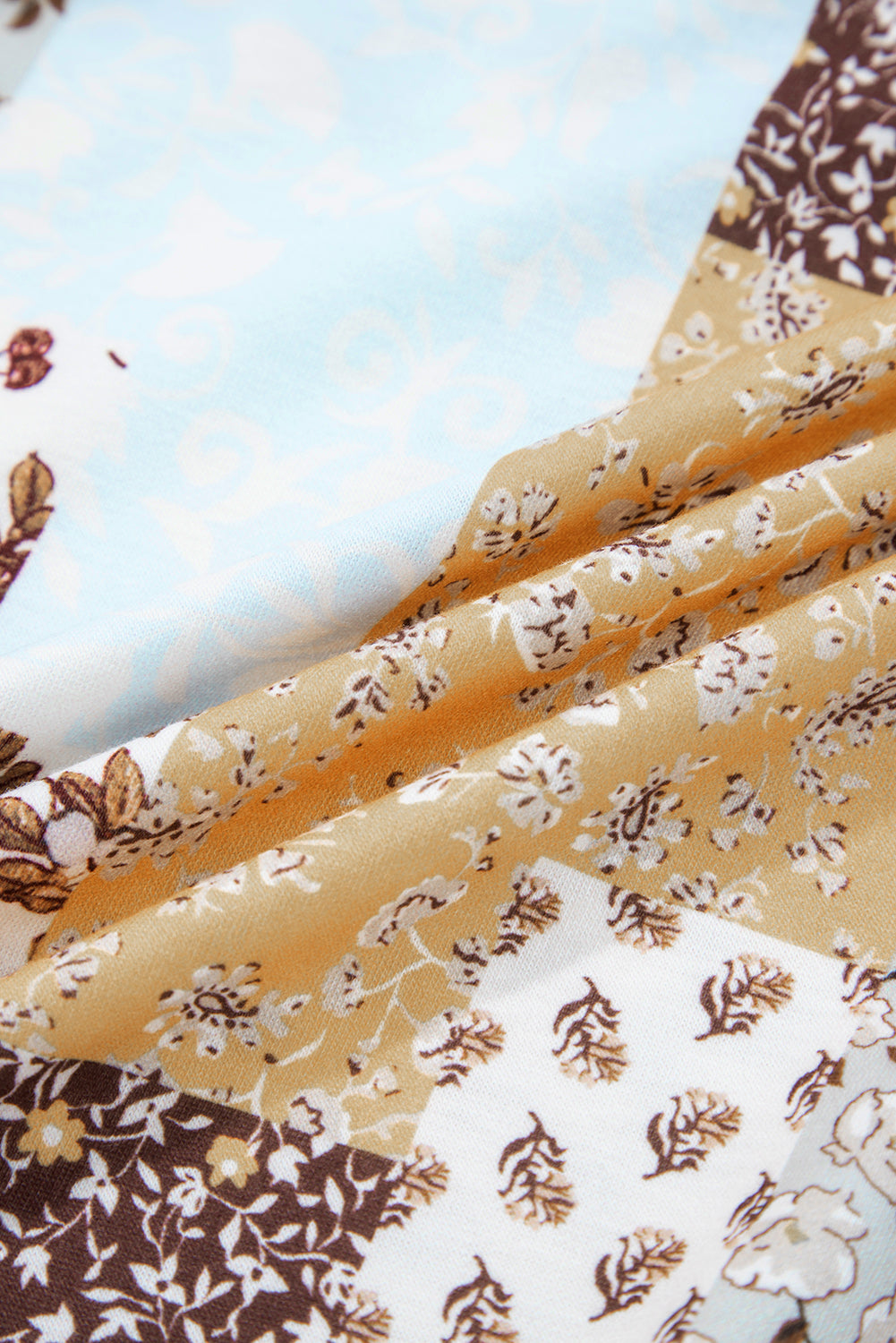 White Floral Printed Contrast Patchwork Long Sleeve Top