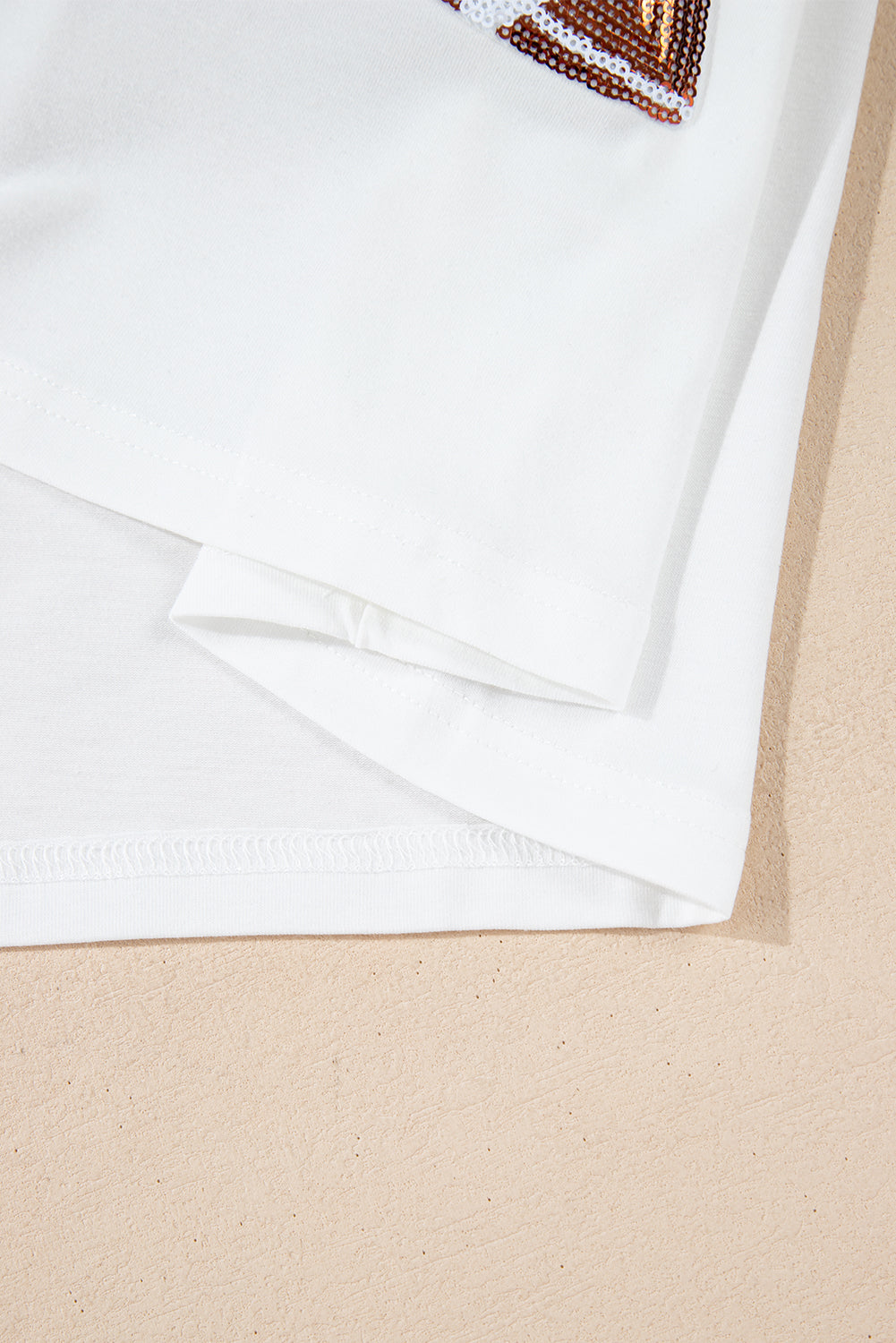 White Sequined Rugby Football Graphic Cotton T Shirt