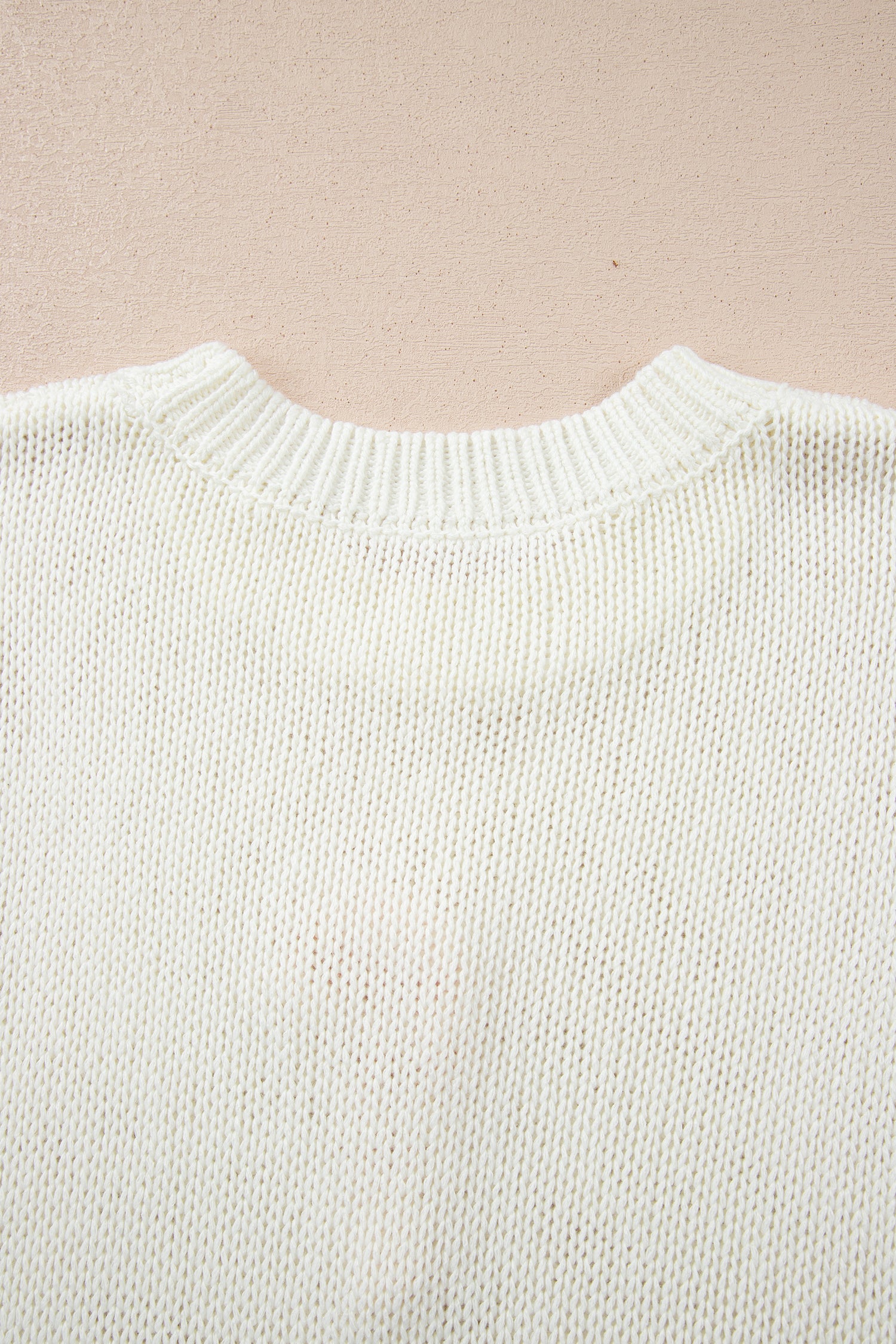 White Short Sleeve Knit Contrast Bow Knot Loose Sweater