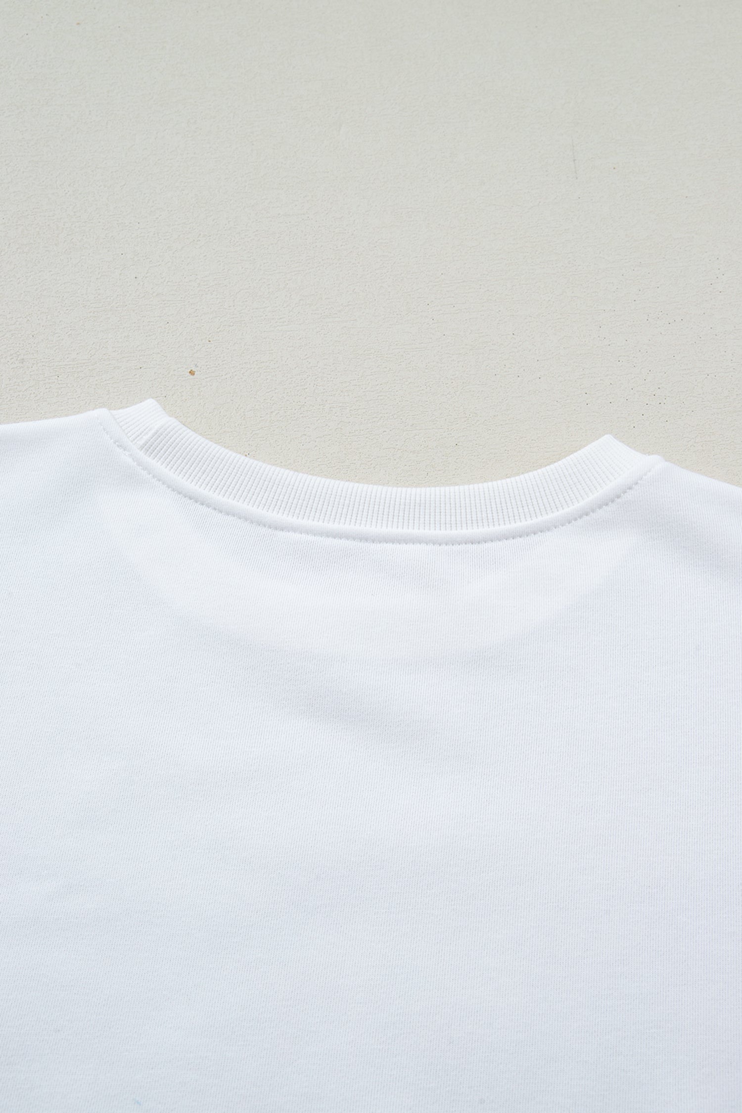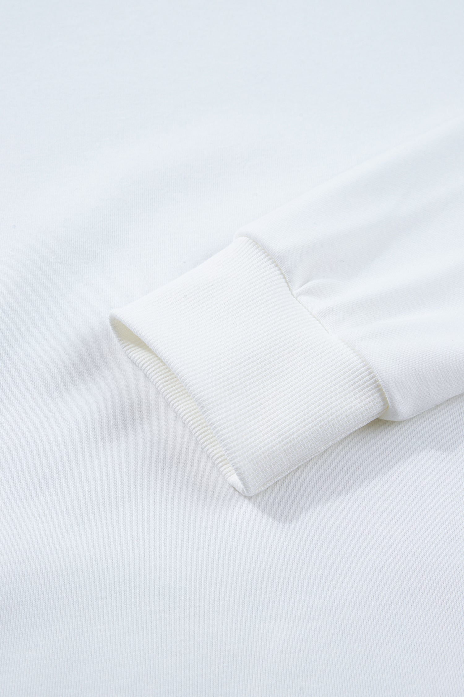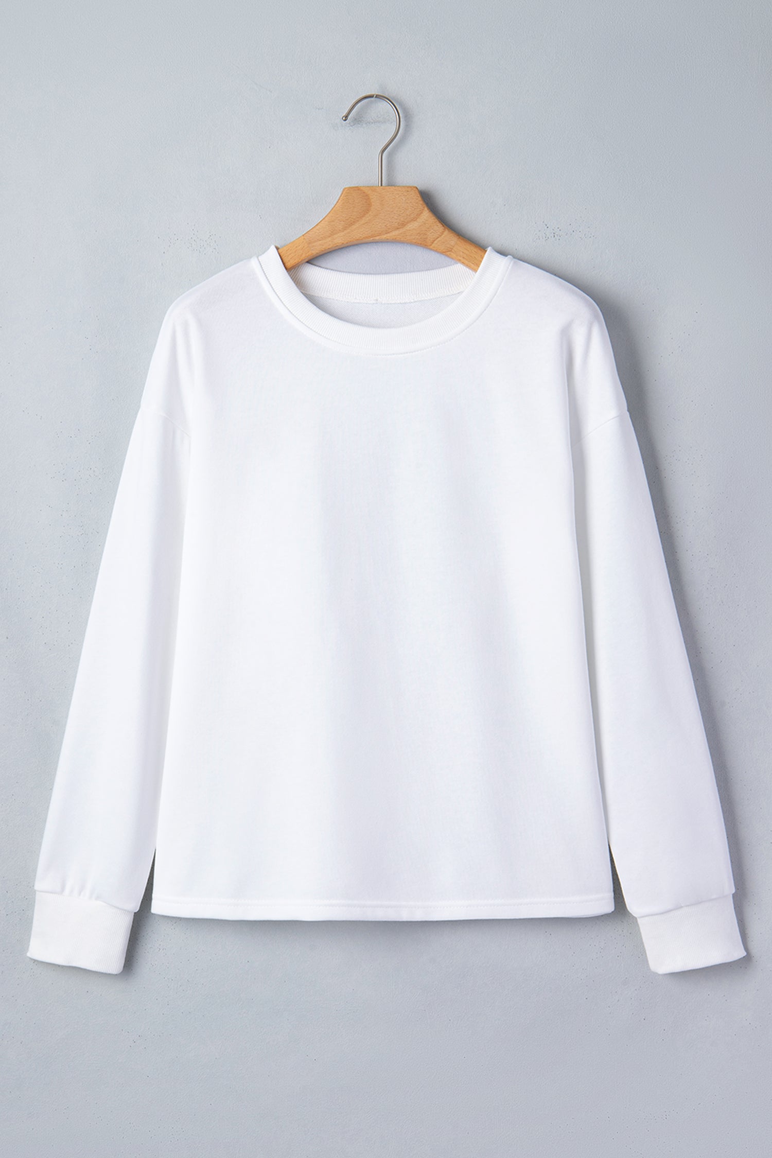 White Solid Color Dropped Shoulder Long Sleeve Top