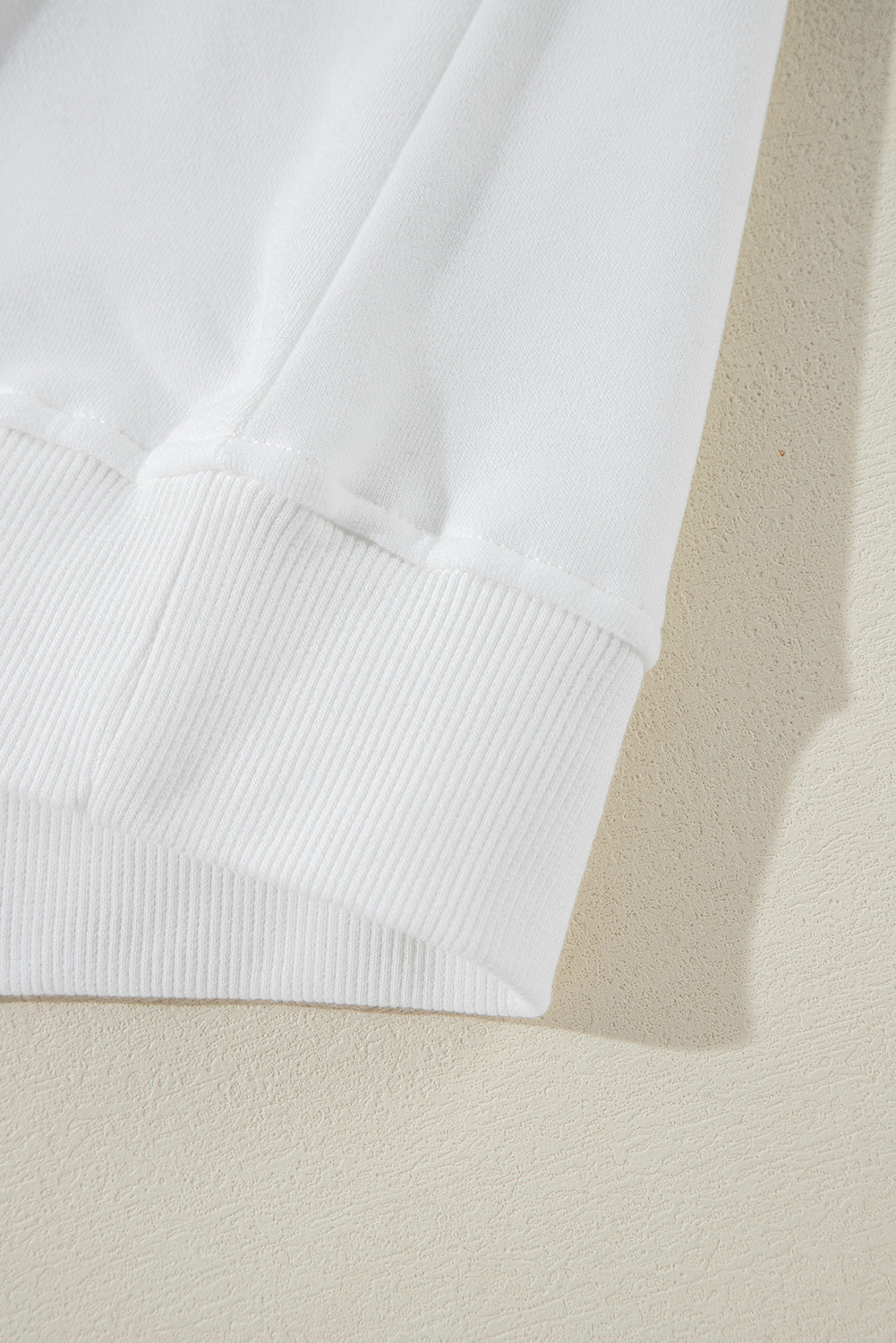 White Solid Puff Sleeve Round Neck Pullover Sweatshirt