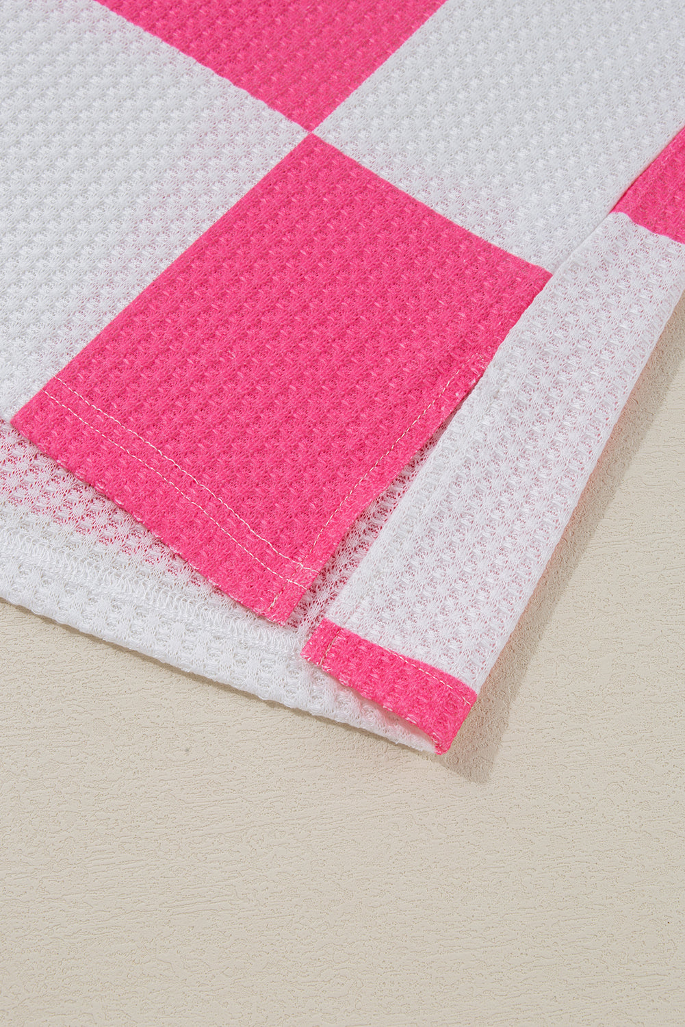 White Textured Checkerboard Round Neck Plus Size T Shirt