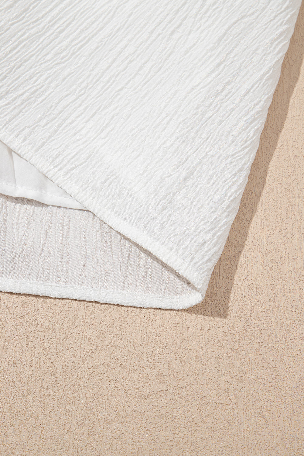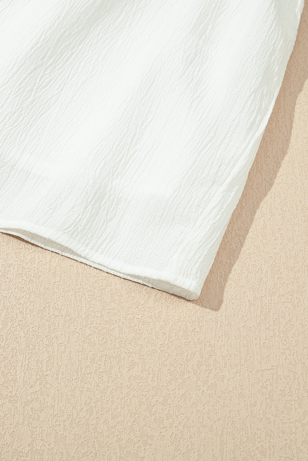 White Textured Ruffled Trim V Neck Flutter Flowy Top