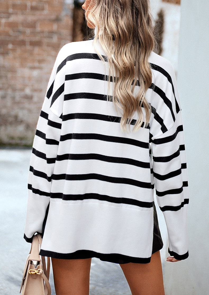 White Turtleneck Striped Long Sleeve Knitted Pullover