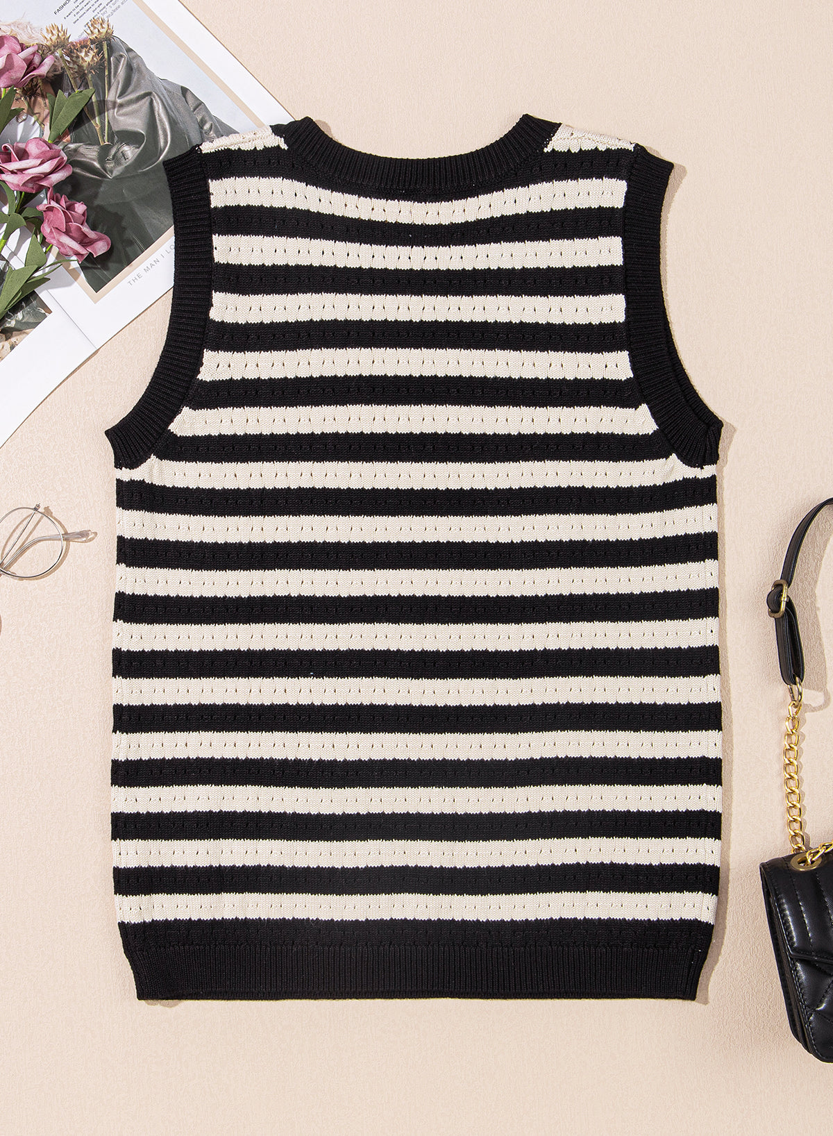 Women's Vest Sleeveless Striped Colorblocked Knit Crepe Top