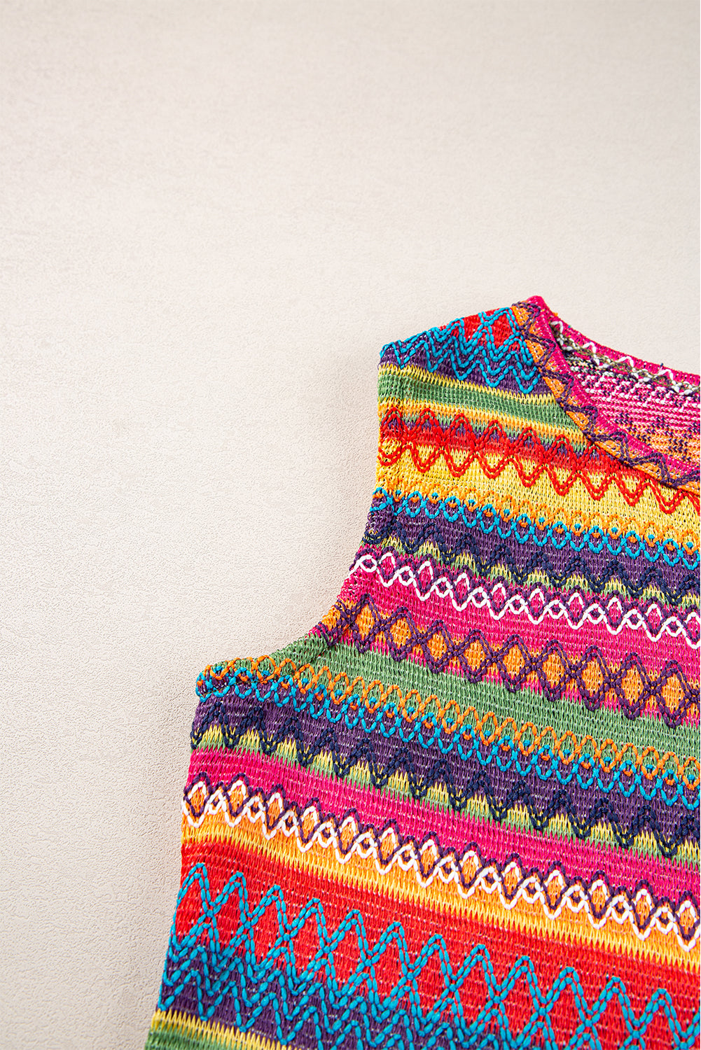 Unique ethnic wavy pattern creates this tank top a trendy look